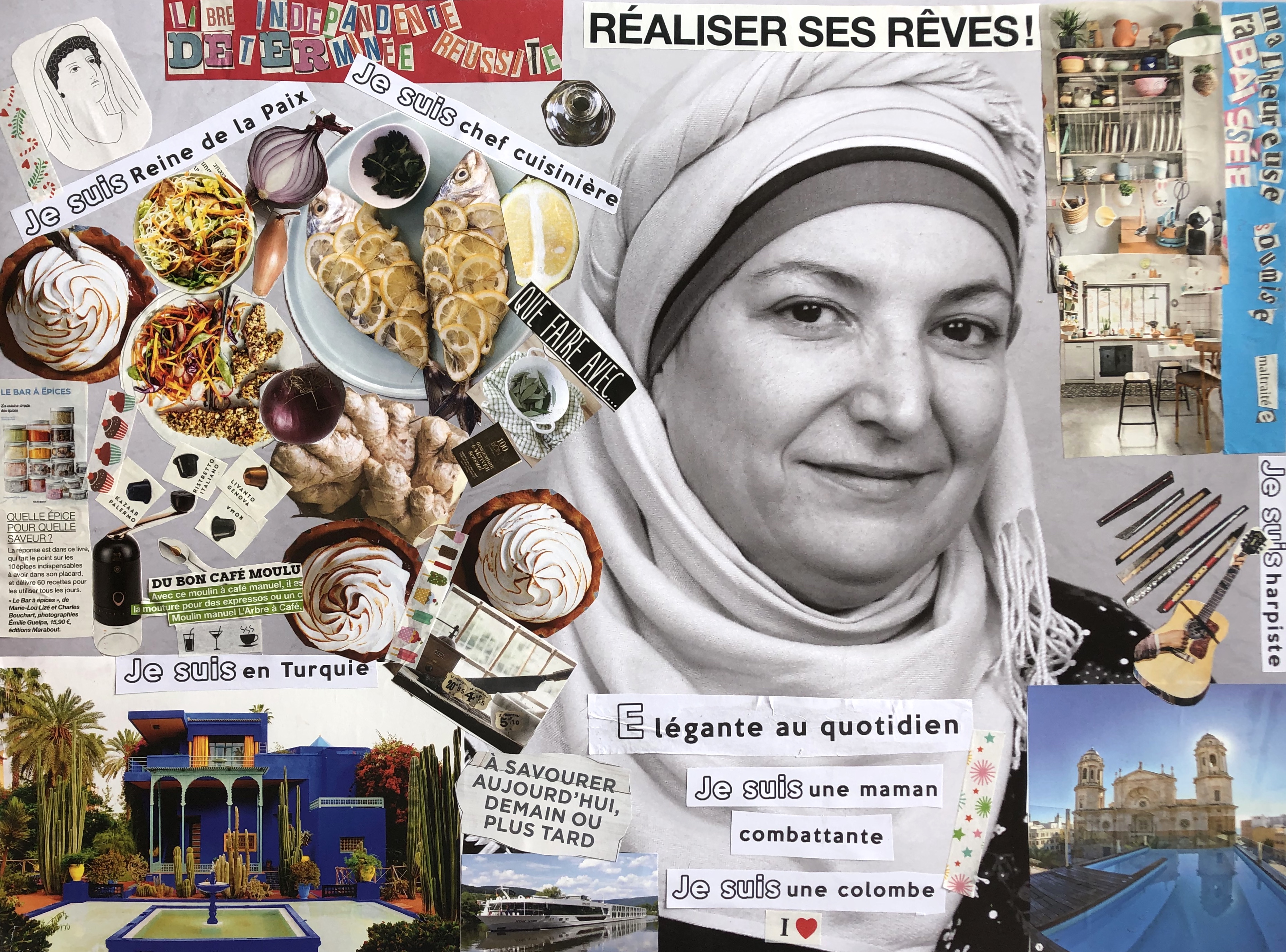 Ensuite, chacune, sur son portrait, a ajouté des visuels minutieusement choisis, toujours en lien avec son histoire de vie, ses envies, ses hobbies.